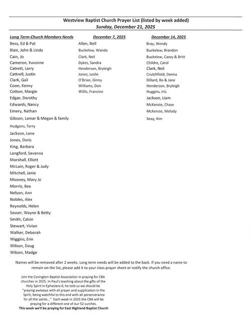 Worship Guide & Prayer List